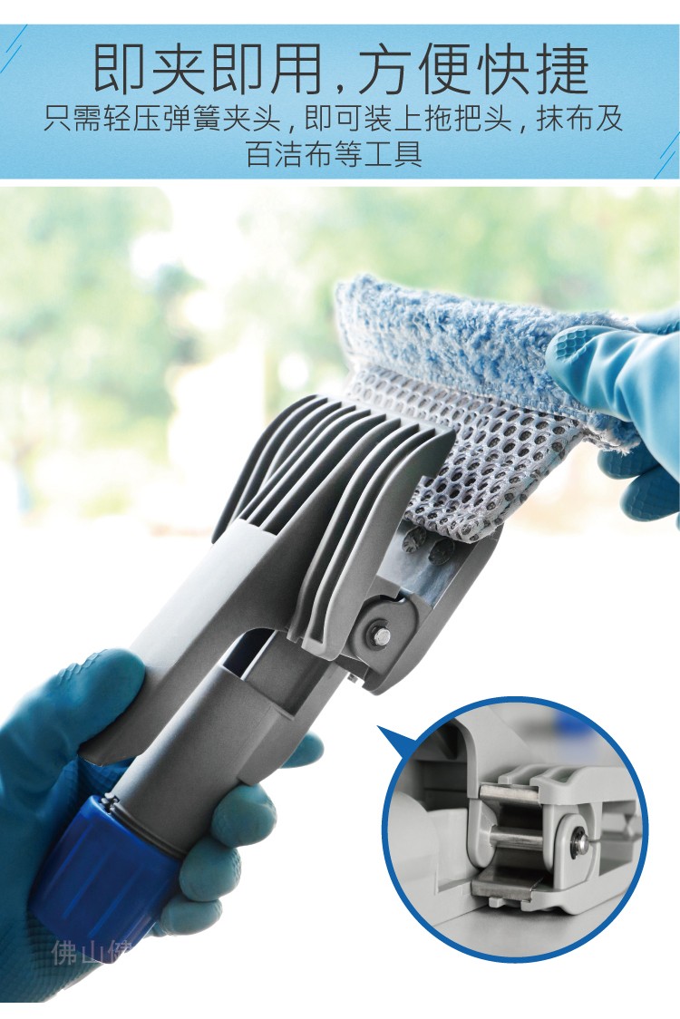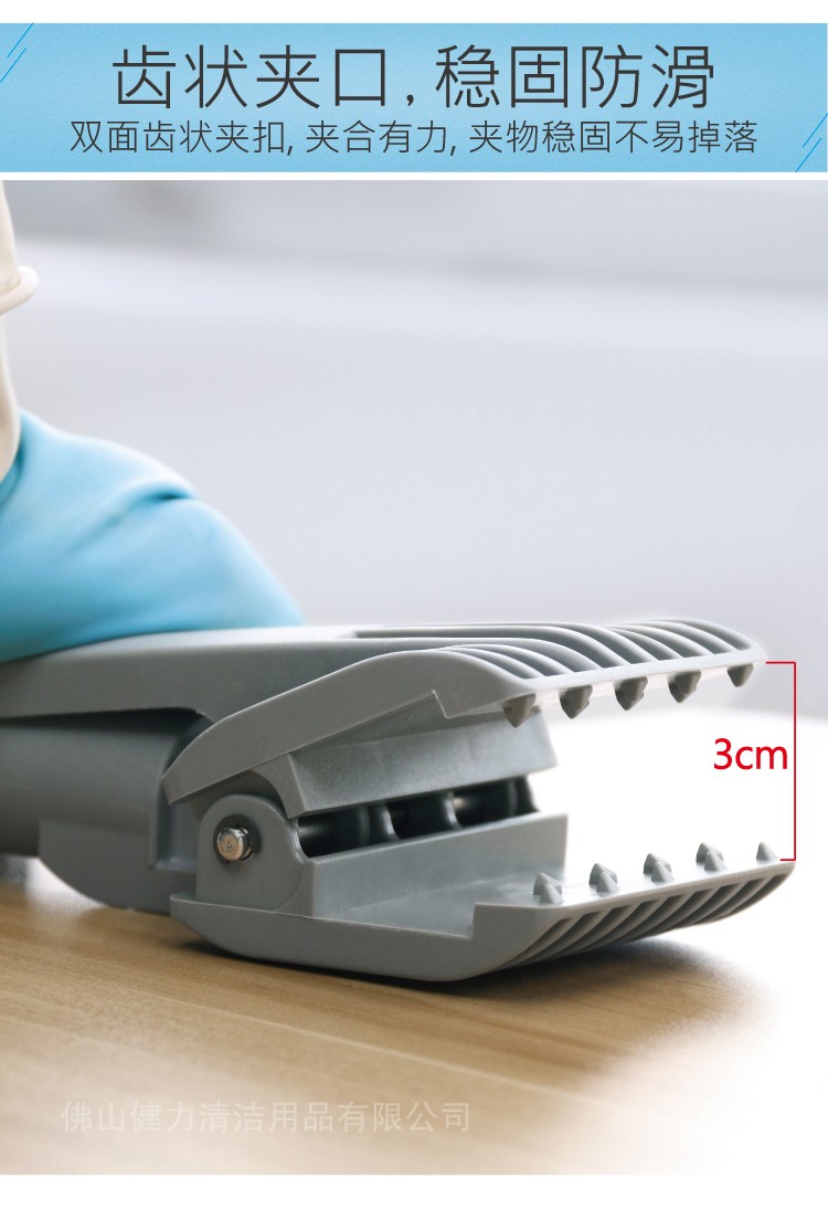 可夾(jiá)抹布、百潔布、拖把頭,便於清潔地麵、牆麵、玻璃