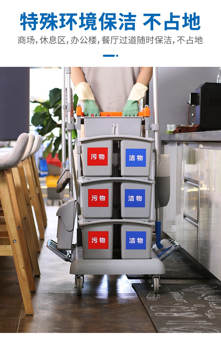 靈動型平推係統清潔車(chē),配垃圾袋,雙格桶x2,含標貼