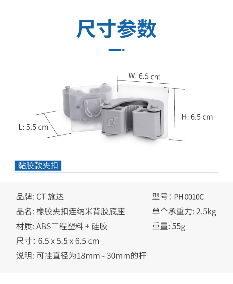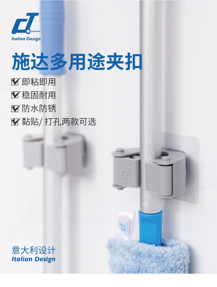 品名:CT 施(shī)達 拖把夾扣連免打孔底座 配膠水+螺絲 2個(gè)裝 PH 0020