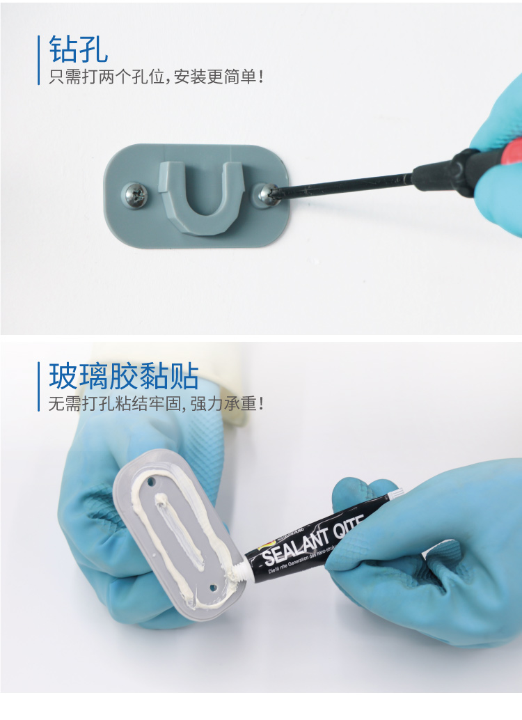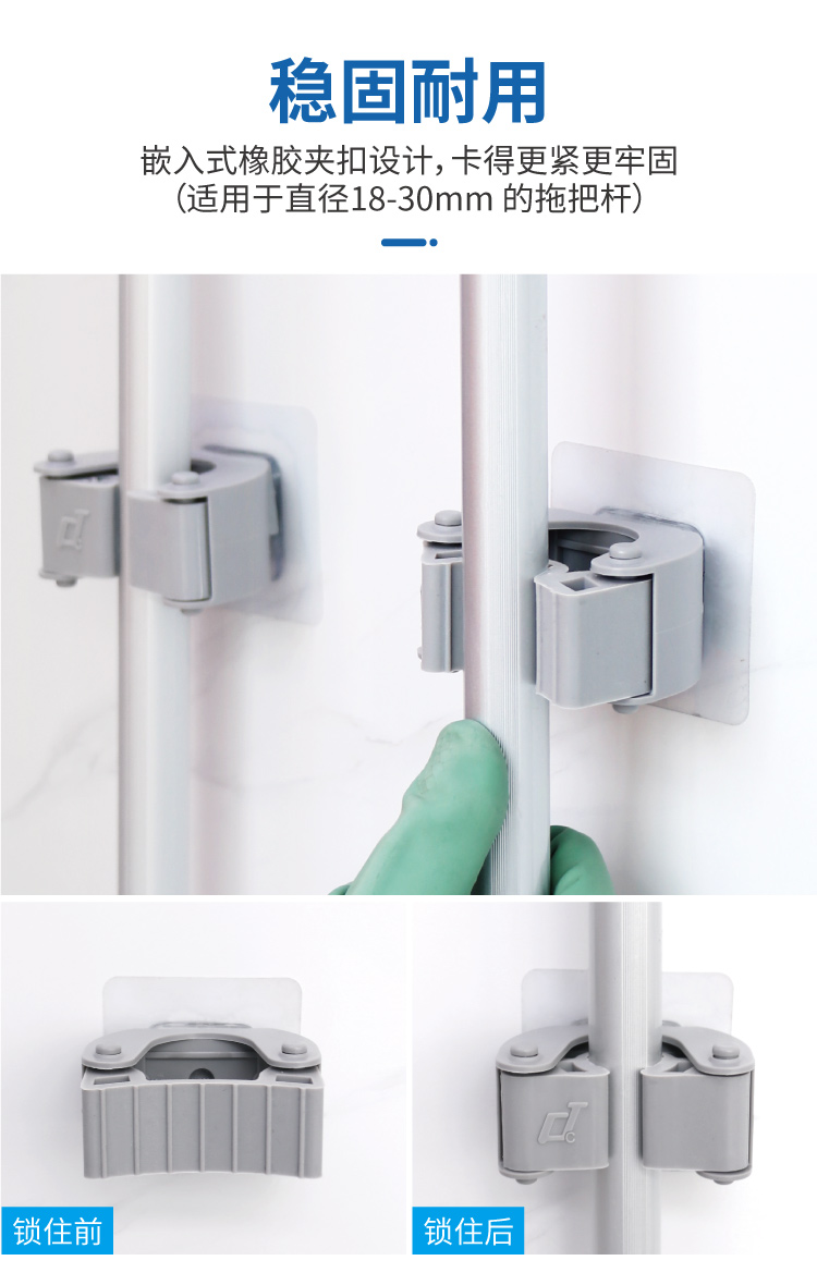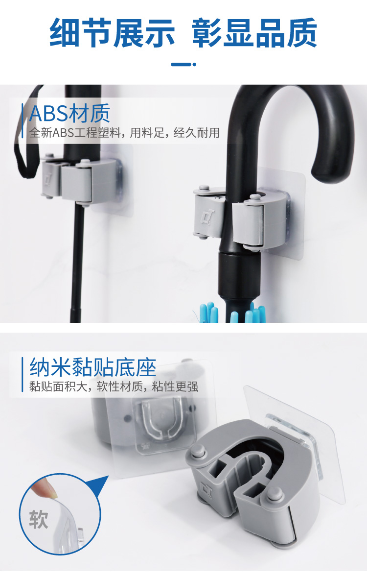 拖把(bǎ)夾扣(kòu)連免打孔底(dǐ)座 配膠水+螺絲 2個裝