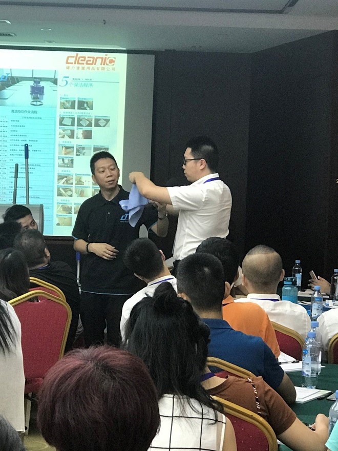通過講解展示,結合現場日常保潔工具(jù)(除塵、濕擦、拖地、垃圾收集等專項)的小比賽,連同筆試,對通過考核的來賓頒發標(biāo)準化培訓證書。