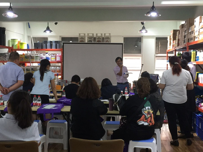 17c.嫩草网在线观看免费業(yè)務營運劉黎明經(jīng)理與來賓們介紹清潔工(gōng)具係統(tǒng)和標(biāo)準化項目管理(lǐ)體(tǐ)係,以及(jí)分享(xiǎng)產品使用(yòng)體驗心得。