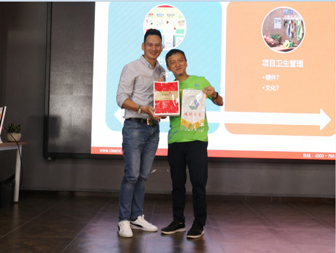 台北市清潔服務商業同業公會理事長贈送健(jiàn)力公司“環(huán)保之友”牌匾,以感謝健力公司為(wéi)大灣區環衛行業事業所作貢獻。