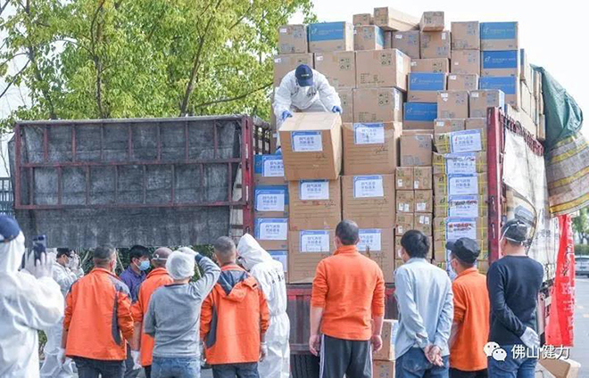 到達武漢(hàn)雷神山醫院(yuàn),武(wǔ)漢經(jīng)銷商正在將物資卸車。