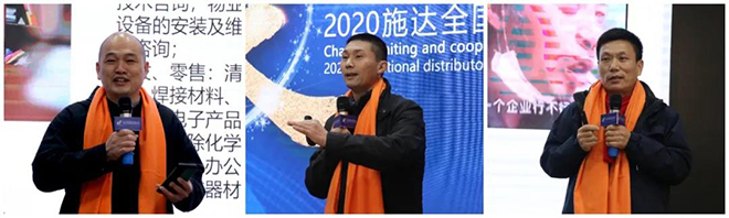 杭州萬川供應鏈管理(lǐ)有限公司施總、北京大地環科清潔設施(北京(jīng))有限公司餘總、湖北恒厚(hòu)新能源有限公司蔣總分(fèn)別上台分享成功經驗。與大家一同(tóng)交流銷售技巧、團隊建設心得,互助互利、互通有無。