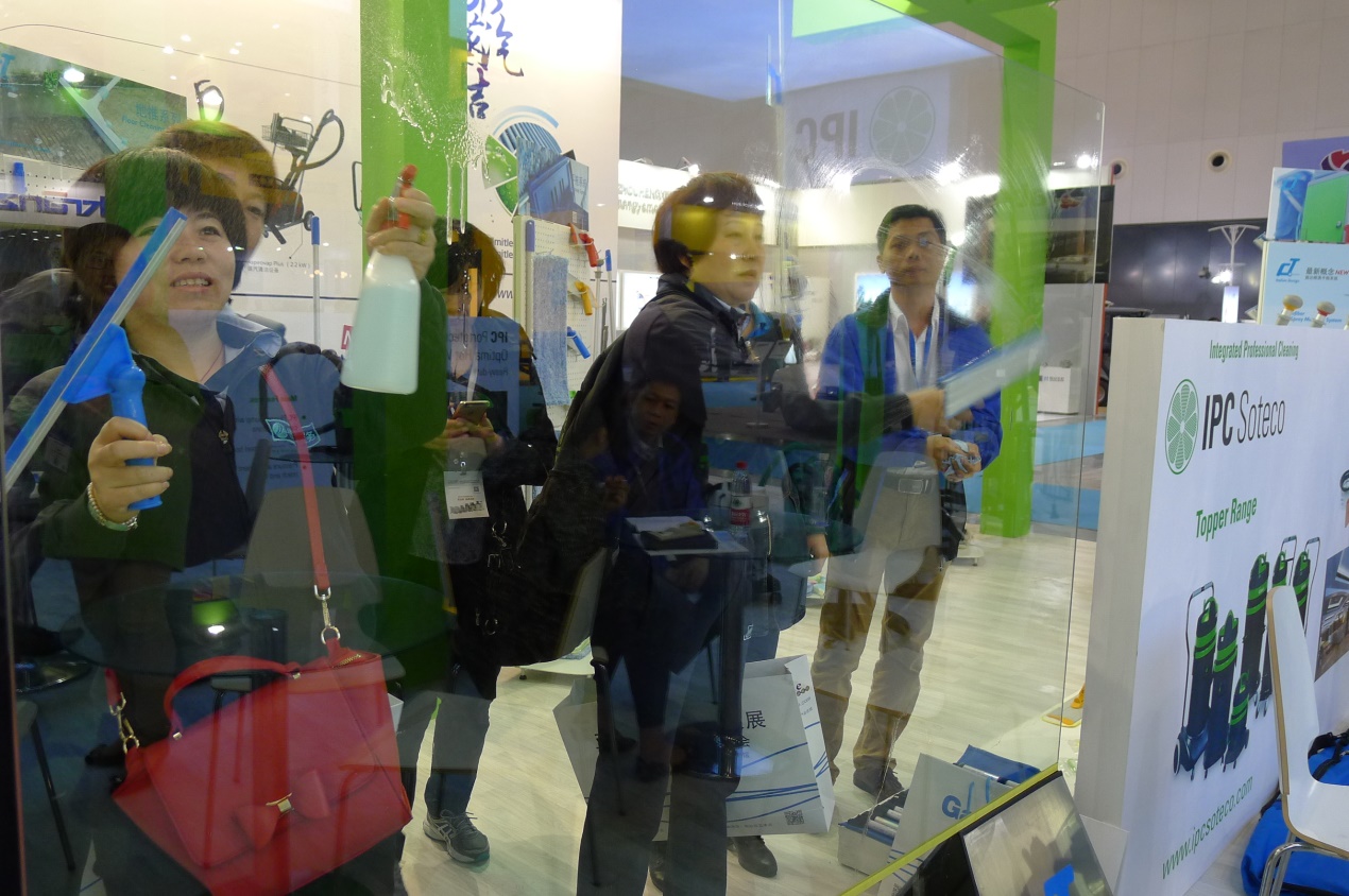 客戶親身體驗新品(pǐn)2合一玻璃刮(guā)及轉向(xiàng)玻璃刮的潔淨效果