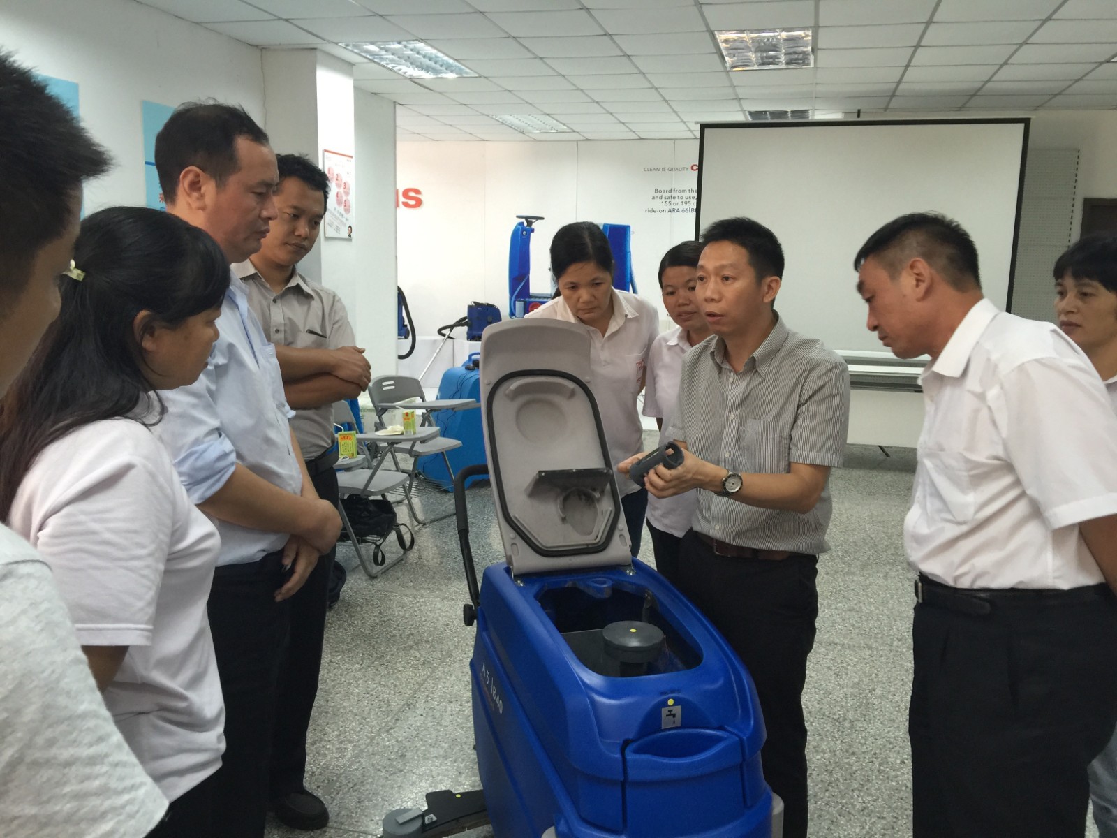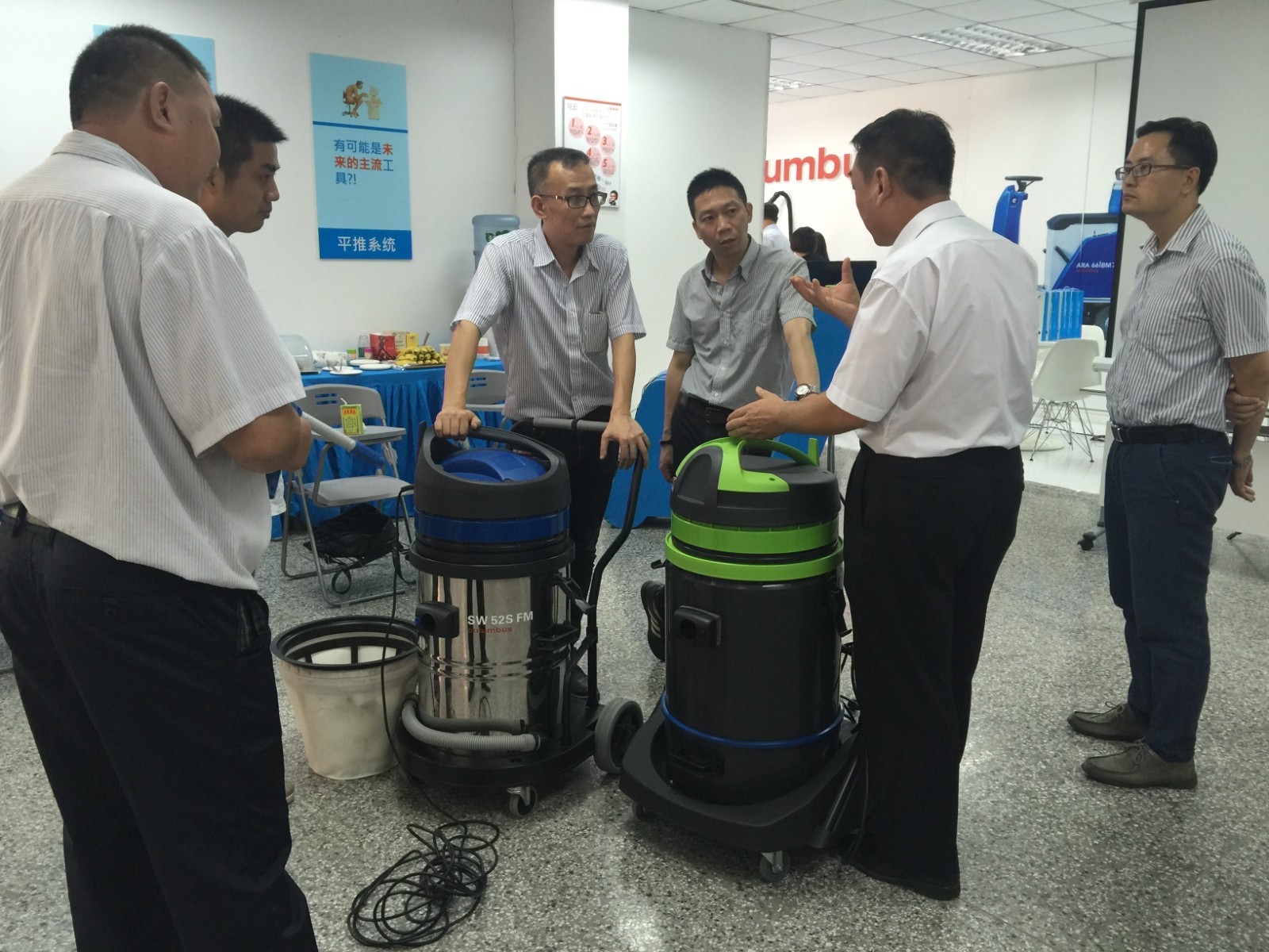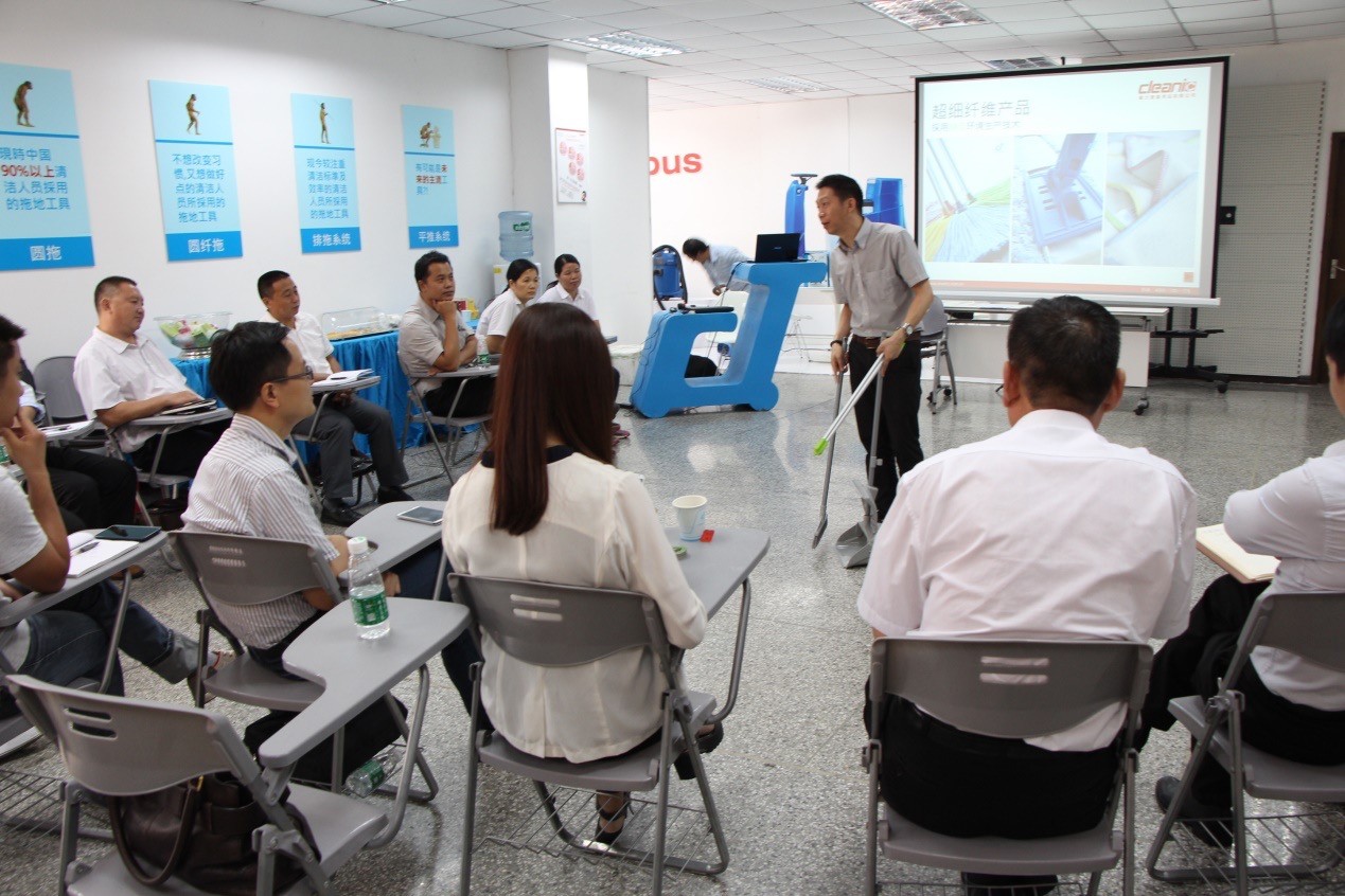 2015年9月24日,健力集團迎(yíng)來廣州杜(dù)斯曼樓宇服務有限公司管理層人員到訪參(cān)觀與(yǔ)交流。杜斯曼樓宇(yǔ)服務主要為商業大廈、住宅及工廠等物業,提供完善優質的(de)清潔和膳食服務。本次親臨全麵探(tàn)討(tǎo)相關清潔設備及清潔概念;包括清潔機器、清潔劑、及各(gè)種工具等多方麵的應用及維護保養(yǎng)。會議中(zhōng)嘉賓們提供各種案例進行深(shēn)入探討及尋(xún)求解決方案。期間健力(lì)集團董事長吳永新分享全新的清潔管(guǎn)理概念及分析(xī)行業未來發展(zhǎn)新趨勢,透過麵(miàn)對麵的交流和嘉賓分(fèn)享(xiǎng),雙方(fāng)也感到獲益良(liáng)多。